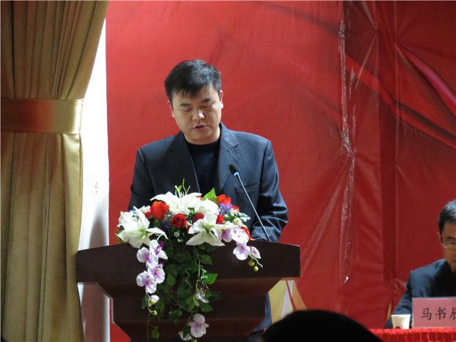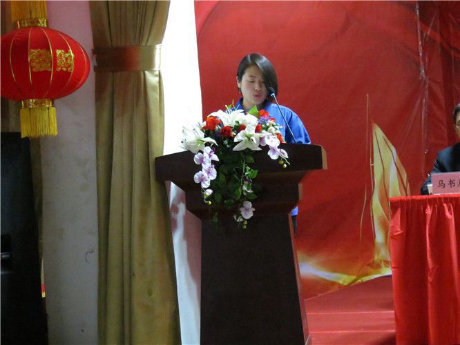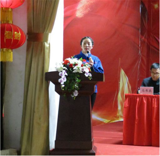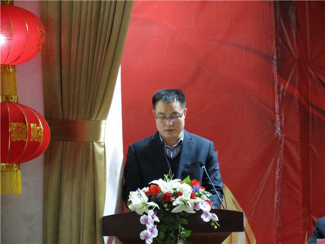 表彰大會上醫(yī)用公司董事長楊棉宣讀《華寶集團開展向2017年度勞動模范、先進工作者、先進集團學習的通知》。